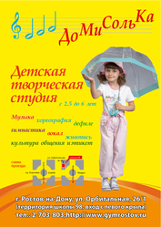 "Домисолька" предлагает комплексную развивающую программу для детей от 2-х до 6 лет. Дети занимааются развитием речи, подготовкой к письму, элементарной арифметикой, хореографией, музыкой, рисованием, английским, изучают театральное искусство.